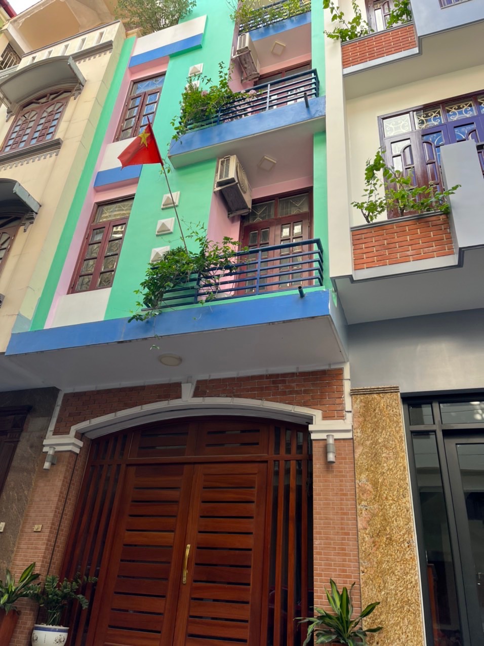 Các tầng đều có lan can trồng cây cảnh.